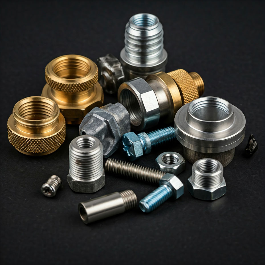 Comprehensive range of brass fasteners including screws, nuts, washers, and custom parts