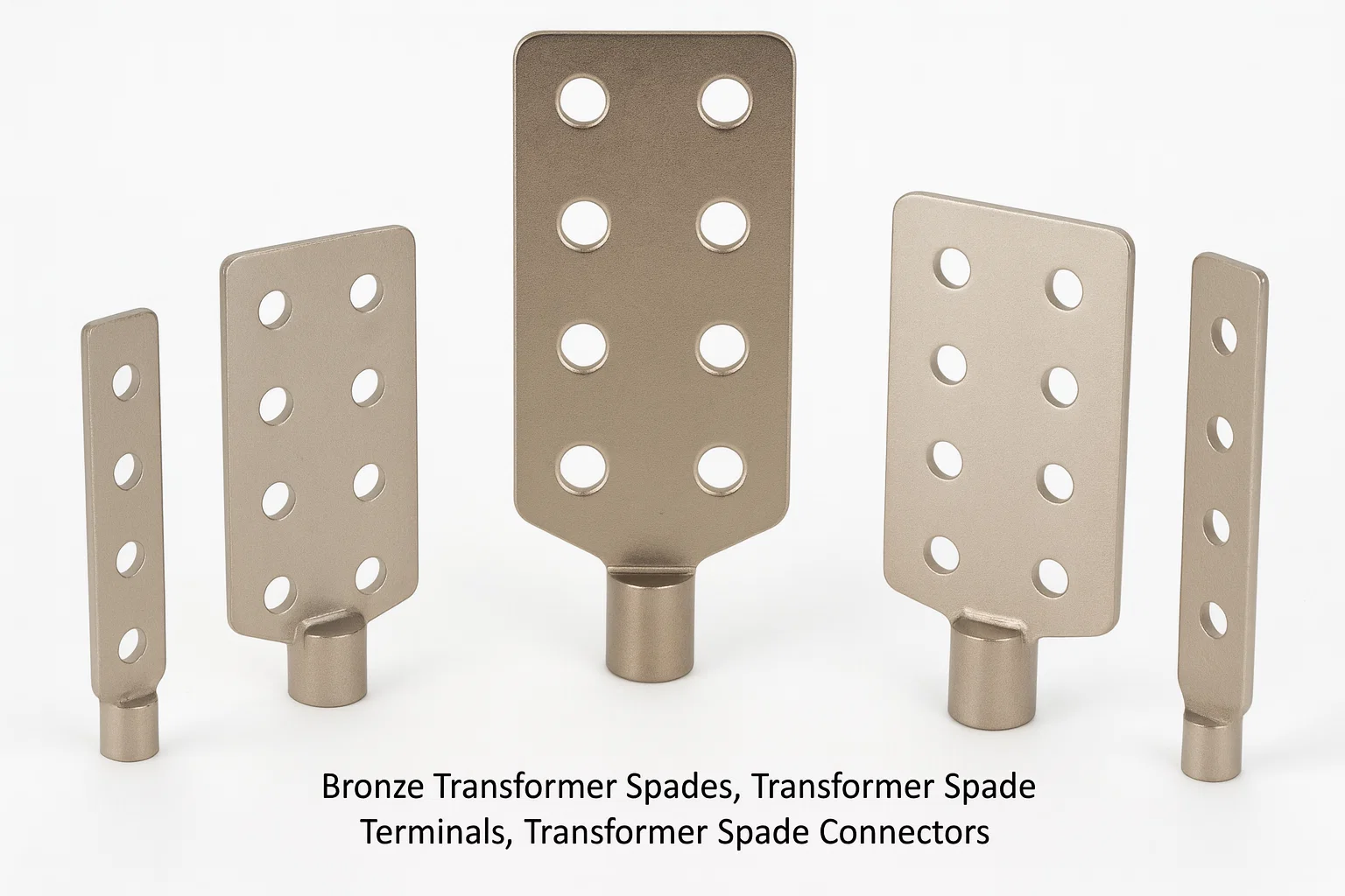 Bronze Transformer Spades, Transformer Spade Connectors, Transformer Spade Terminals Price: US$ 14.10/Kilogram High-Conductivity • NEMA-Spaced • Precision-Machined Copper-Alloy Transformer Connectors 1. PRODUCT OVERVIEW Bronze Transformer Spade Terminals (also called Transformer Spade Connectors or Transformer Spades) are high-current, bolted electrical connectors used to interface transformer bushings, busbars, and cable lugs. Manufactured from high-strength copper-based alloys